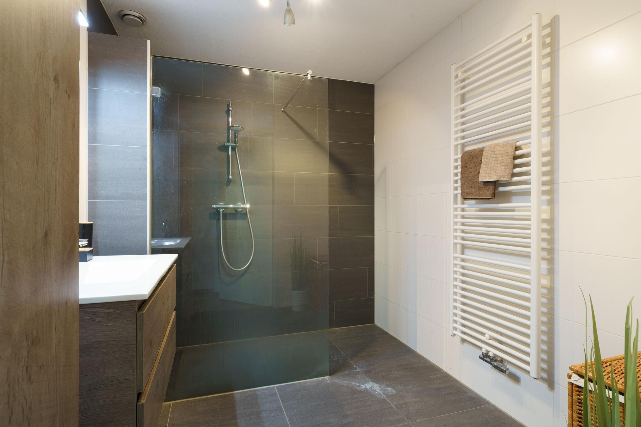 Ruime overloop met 3 slaapkamers, badkamer, aparte toilet (v.v. een zwevend closet en fonteintje) en een wasruimte met het mechanische ventilatiesysteem en de wasmachine-/drogeraansluitingen. De hoofdslaapkamer is over de gehele breedte aan de voorzijde gelegen. De 2 andere slaapkamers zijn aan de achterzijde gelegen. De moderne badkamer beschikt over een ruime inloopdouche, wastafelmeubel, opbergkast en betegeling tot het plafond.
