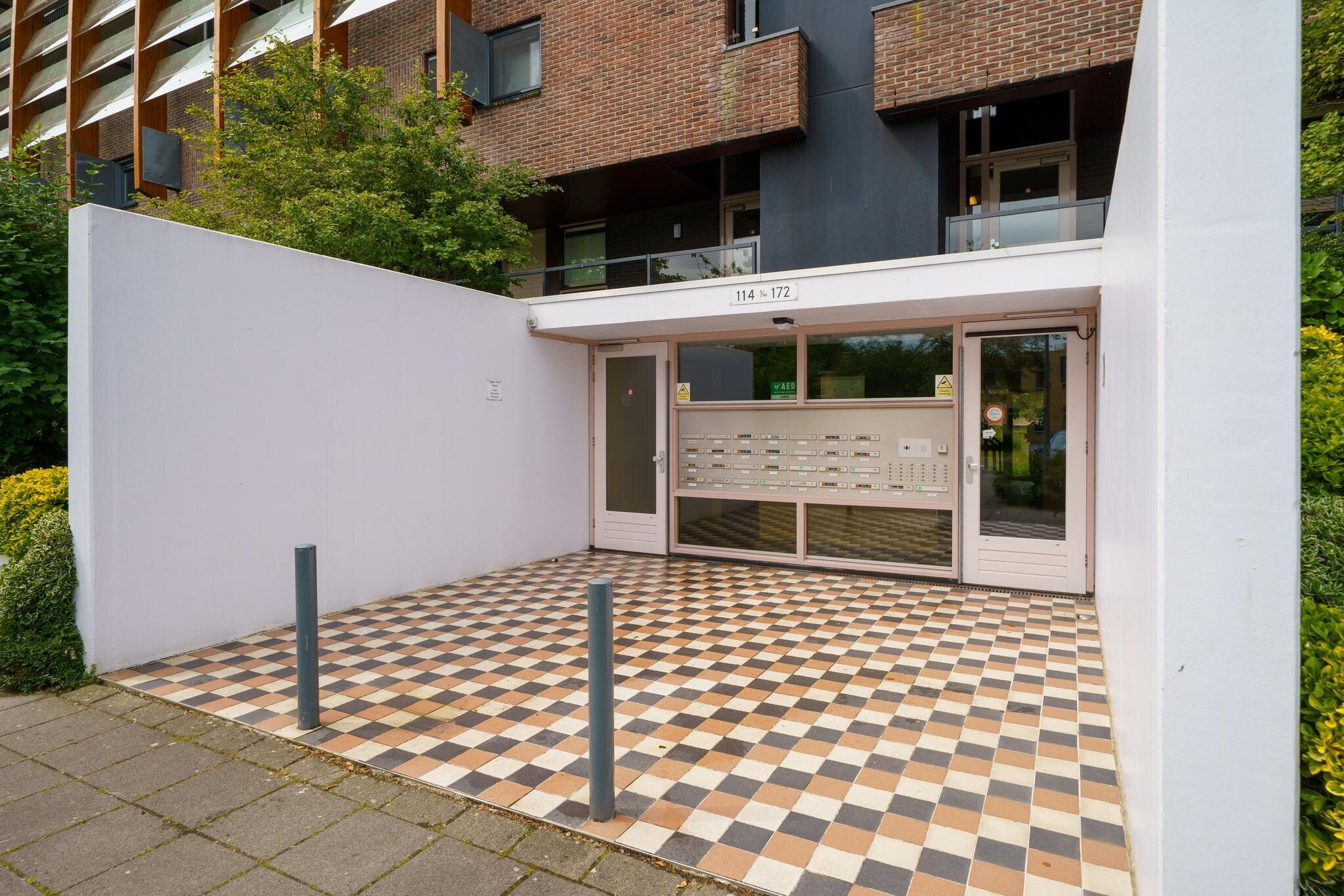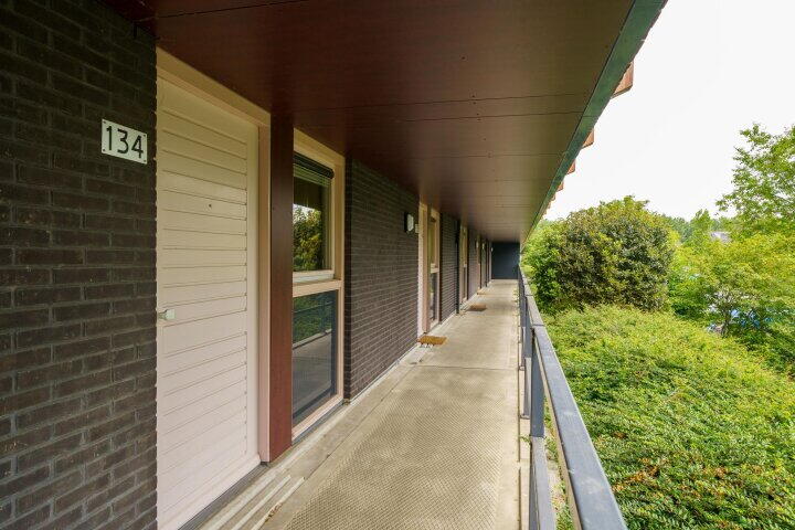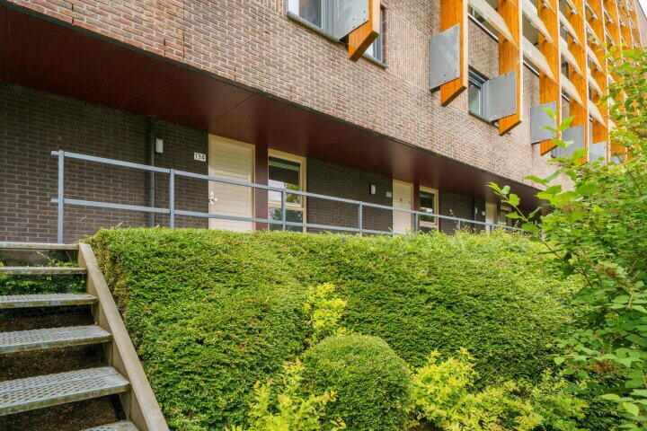 De entree van de woning is gelegen op de eerste verdieping en bereikbaar via de trap op het talud aan de voorzijde of vanuit de centrale hal met lift, brievenbussen en belplateau. Tevens is hier de toegang tot de gang met de bergingen.