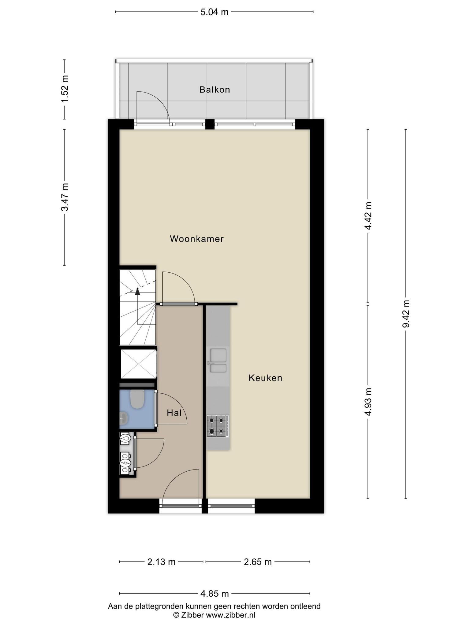 - 16 m² (3.23 meter diep en 5.05 meter breed)