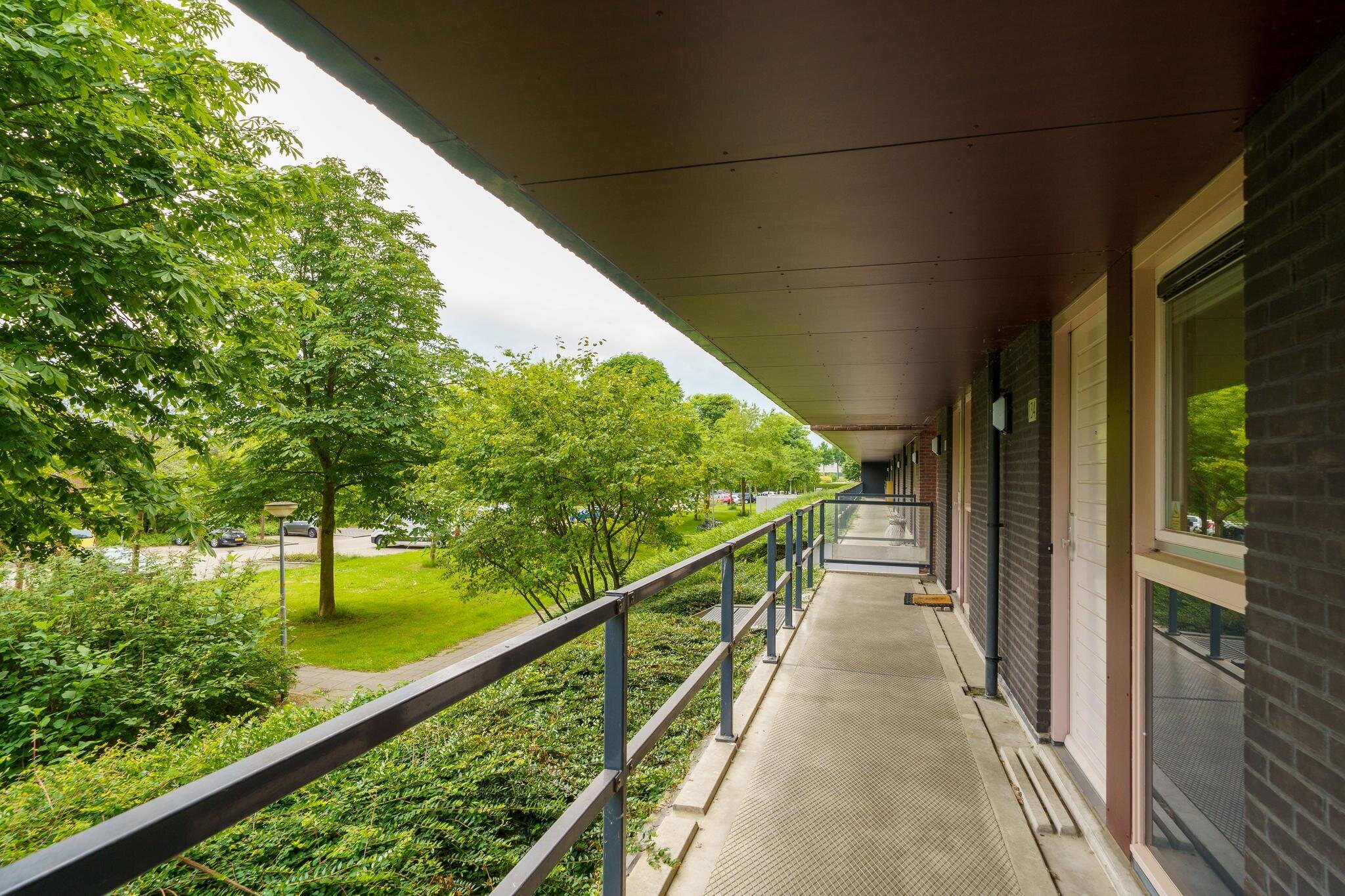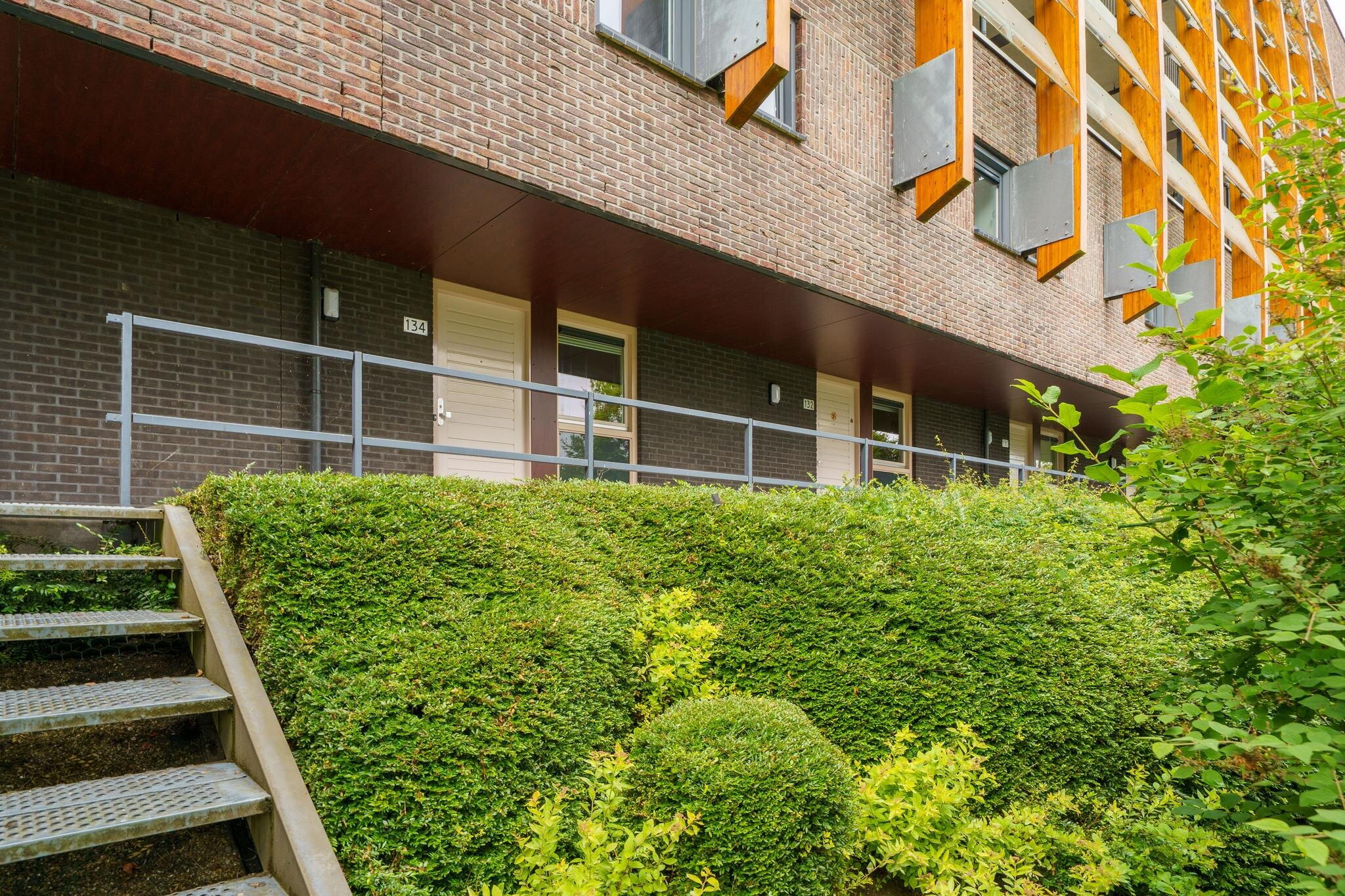 Hier bevindt zich een kleine hal met toegang tot de ruime en lichte tuinkamer, ideaal als werk-/studeer-/slaapkamer of kantoor aan huis met deur naar de tuin. De tuin (ca. 16m2) is gelegen op het zuidwesten en biedt veel privacy door het bovengelegen balkon. De tuin grenst direct aan een brede groenstrook. Vanuit de hal heeft u tevens toegang tot de grote inpandige berging (8m2) met deur naar de centrale hal van het complex.